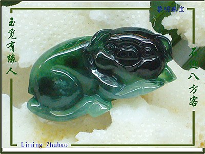 料子青翠,雕工精湛.玉猪列嘴,喜气洋洋.定价不高,值得收藏.